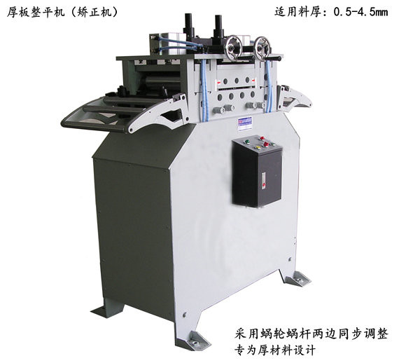 2、矯正機可單獨使用,同時可配合MT型、CR型材料架一并使用,效果良好。3、采用大型氣缸壓料,矯正調節采用同步蝸輪、蝸桿調節,手柄轉動一圈,矯正上輪僅下降1mm可作精細的調整。